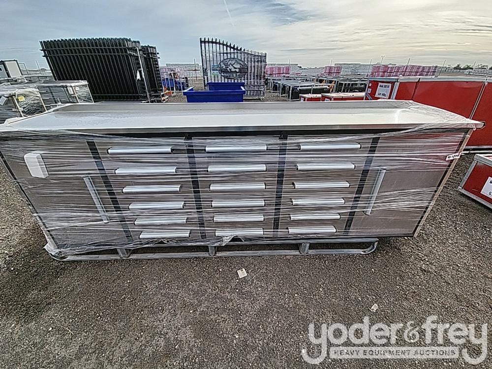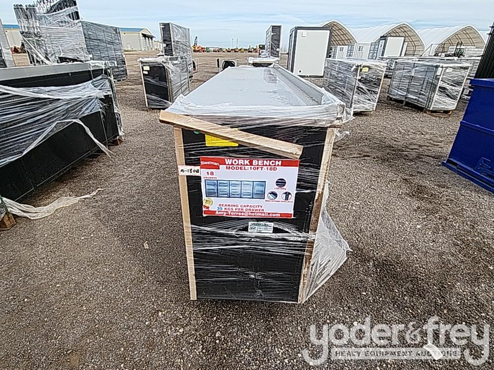 Unused 2023 Steelman 10' Work Bench c/w 18 Drawers, 2 Cabinets, Lock, Anti-Slip Inners, 3 Rail Sliding Stainless Steel - 1********5