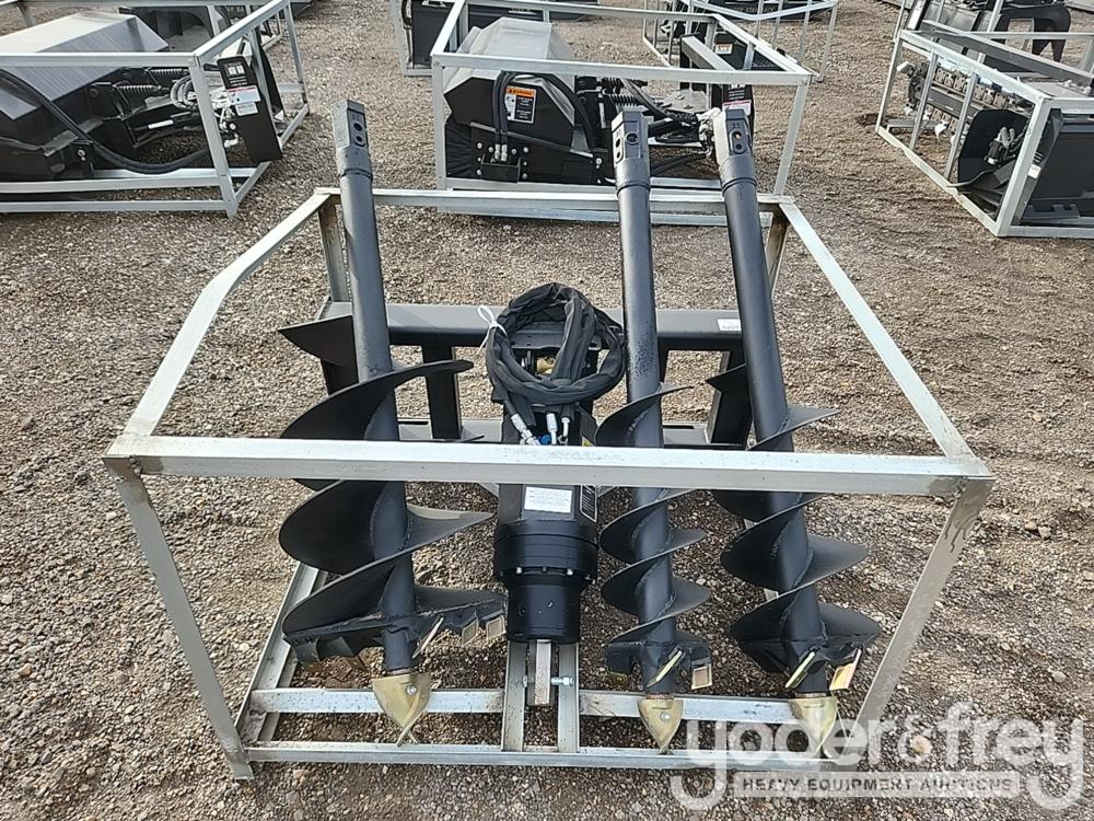 Unused Greatbear Skidsteer Auger c/w Three Bits, Digging Hole Diameters 200-450mm , Operating Flow 50-75L - 1********7