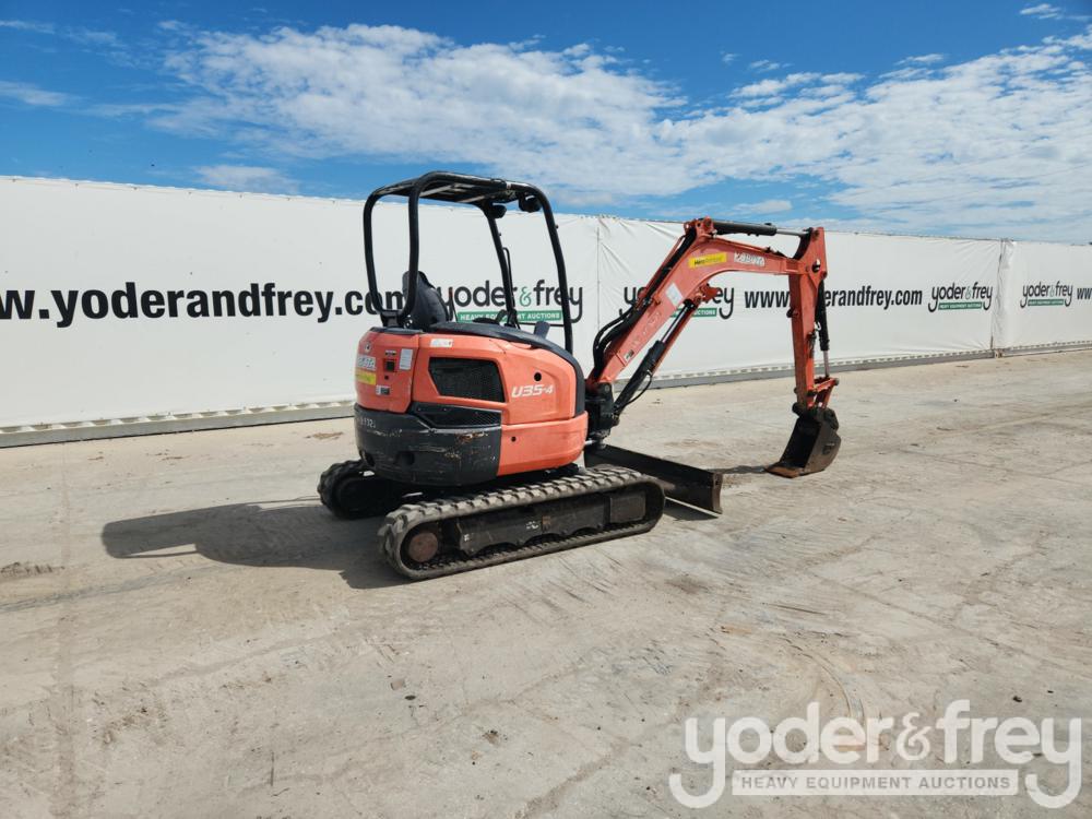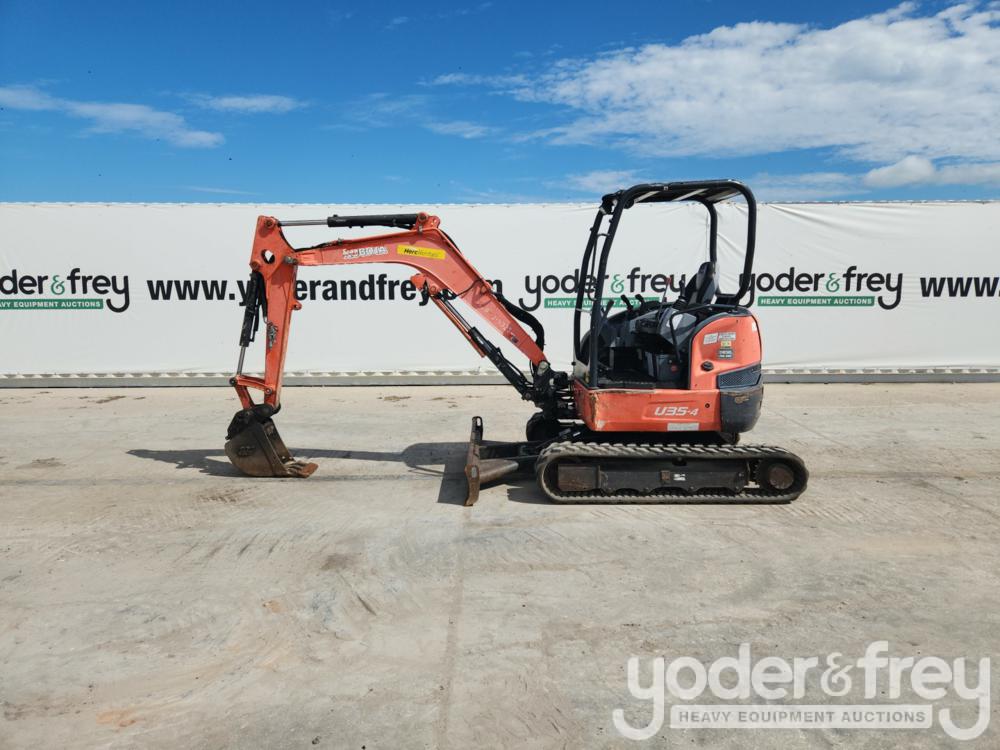 2016 Kubota U35-4 Mini Excavator c/w OROPS, Rubber Tracks, Blade, Swing Boom, Aux Hydraulics, Hydraulic Thumb, 12" Bucket - 12515