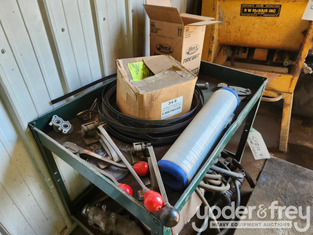 Banding Cart c/w Tools, Clips, Banding, Spare Engine Parts, Steel Box w/ Contents - 2***7
