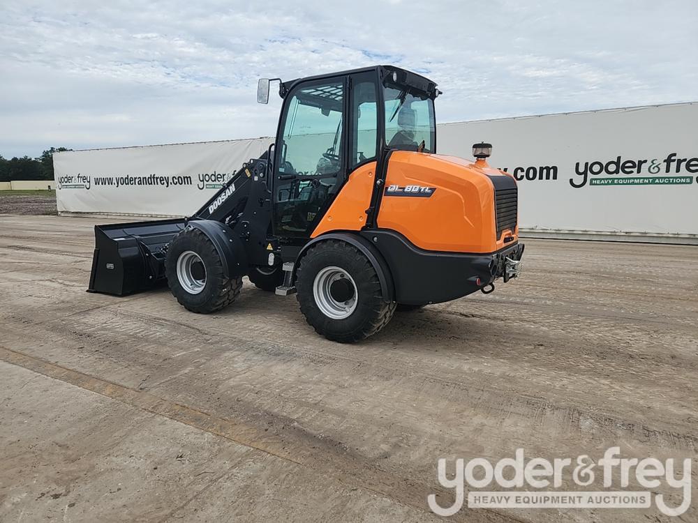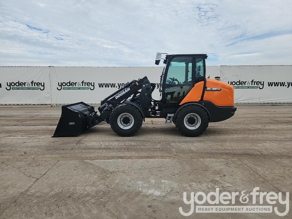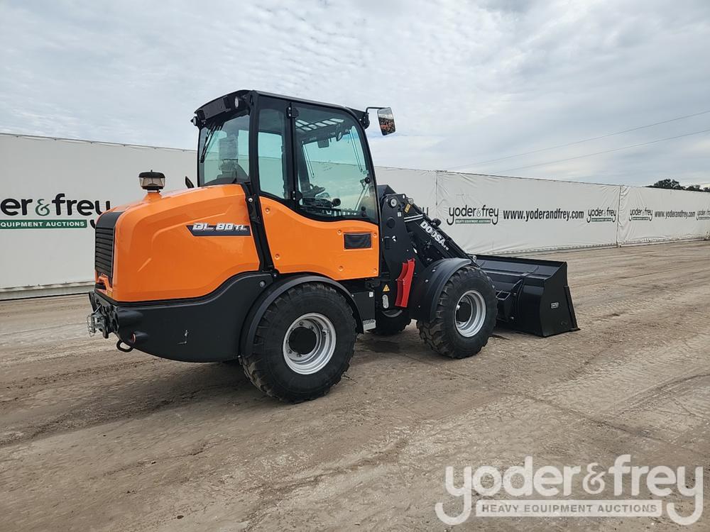 Unused Doosan DL80TL-7 Telescopic Wheeled Loader, Cab, A/C, 64" Bucket, 48" Forks, QC, Joystick Controls (10 Hours) - 6496