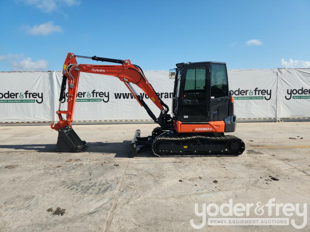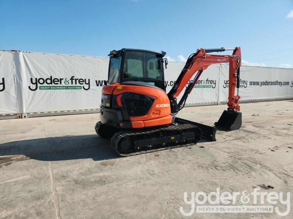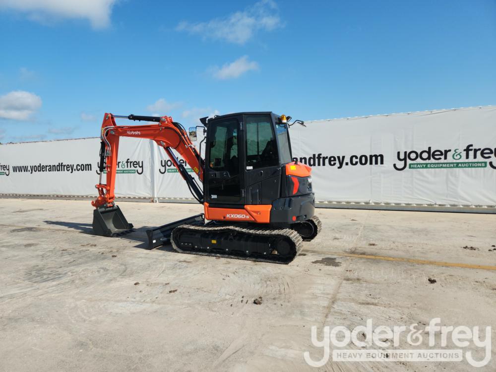 Unused Kubota KX060-5 Excavator, A/C, 16" Pads, Blade, Swing Boom, Aux Hydraulics, QC, 24" Bucket, Plumbed for Rear View Camera (9 Hours) - 0222