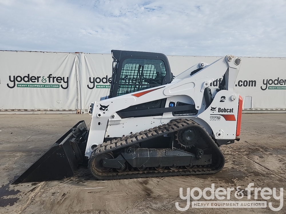 2018 Bobcat T870 Tracked Skidsteer Loader, Hi Flow, Cab, A/C, Rubber Tracks, Joystick Controls, Aux Hydraulics, QC, 72" Bucket (1560 Hours) - 12357