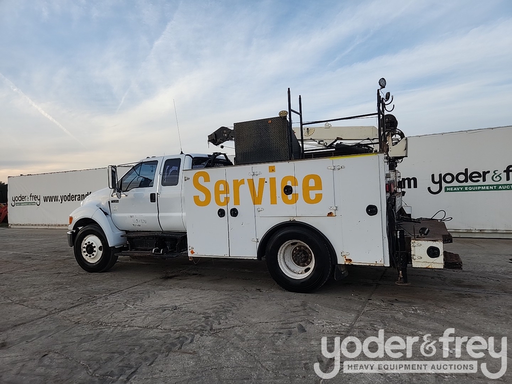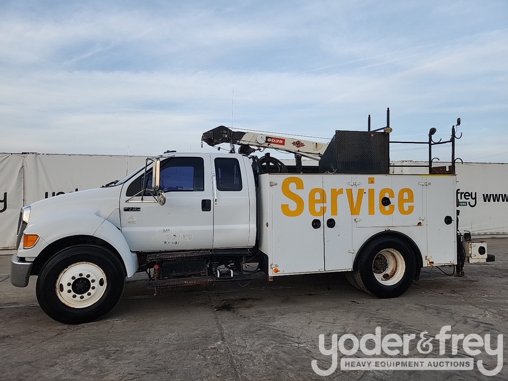 2006 Ford F750 4x2 Extended Cab Service Truck, CAT C7 L6 Diesel Engine, Spicer 7 Spd Manual Transmission, IMT 6025 Crane - 3FRWX75T56V370672