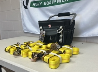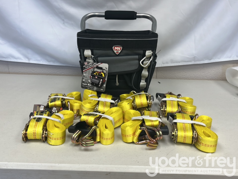 Unused 1 1/2" x 15' Tuff Tow Ratchet Straps c/w 12" Professional Tool Bag (8 pcs in box) - 5****2