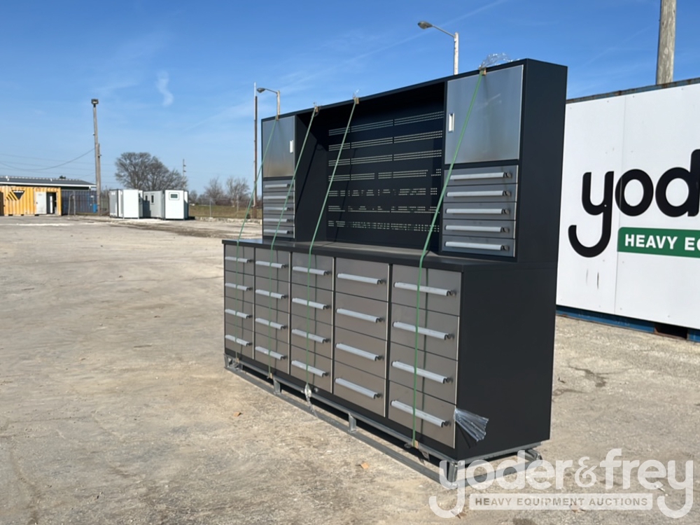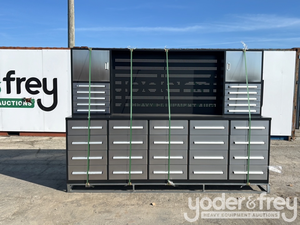 Unused 10' HD Work Bench c/w Tool Box, 30 Drawers, 2 Upper Cabinets - 1******1
