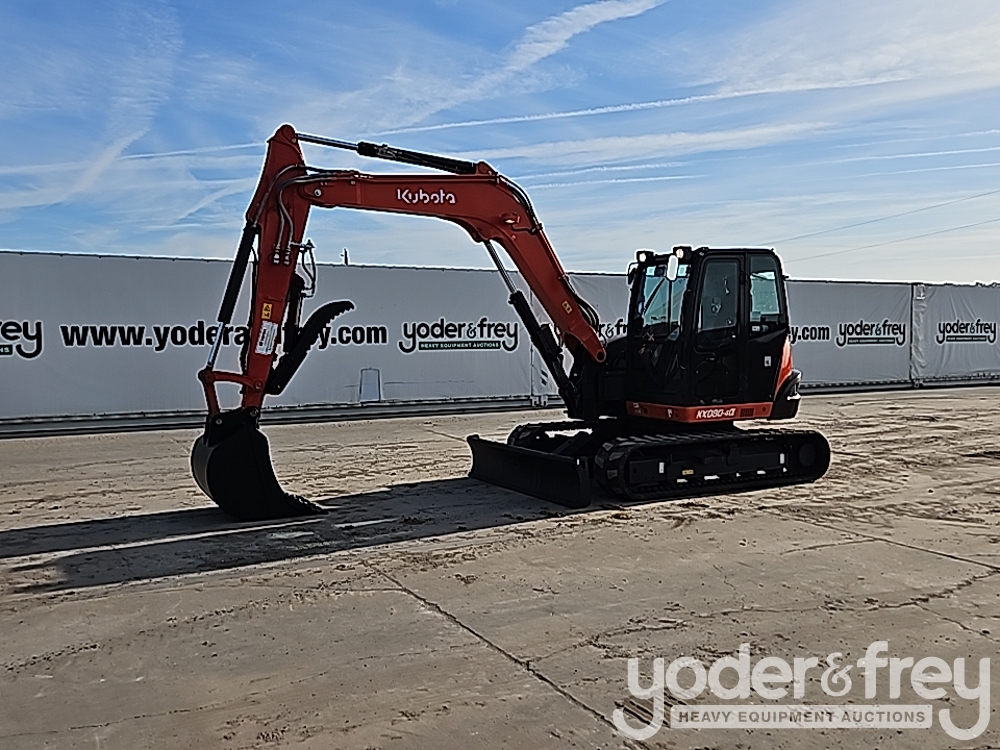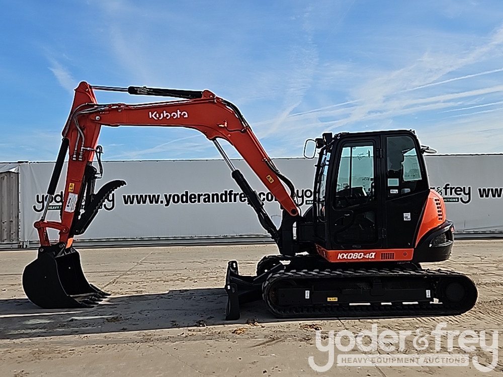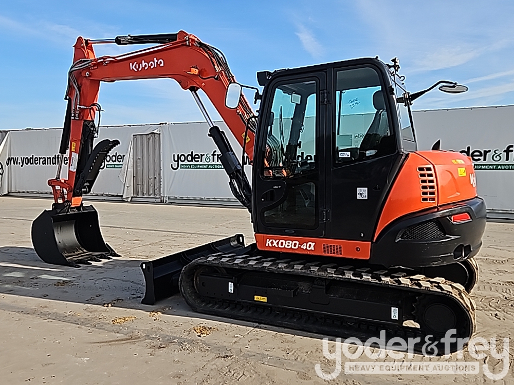 2018 Kubota KX080-4A Excavator, A/C, Rubber Tracks, Blade, Swing Boom, Aux Hydraulics, Bucket, Hydraulic Thumb (Meter Reading: 3058 Hours) - J***************1