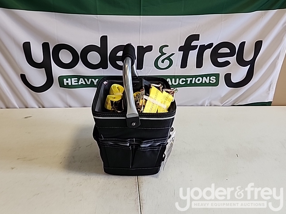 Unused 1 1/2" x 15' Tuff Tow Ratchet Straps (8 of) c/w 12" Professional Tool Bag - 5****2