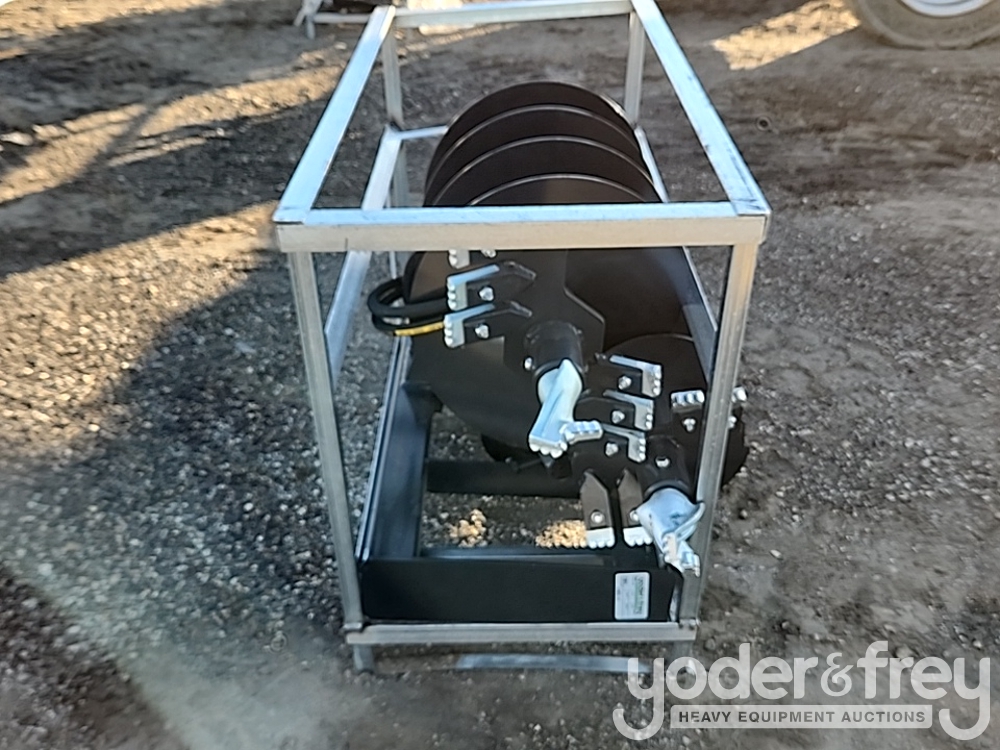 Unused 2024 JCT Skid Steer Hydraulic Auger Drive & Bits c/w Quick Attach, 12" & 18" Alloys Bits - 17816-11