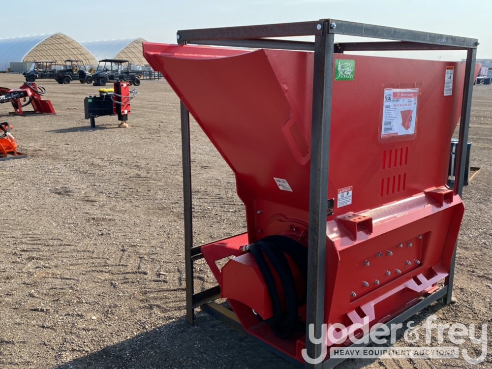 LOT # 0465 -- Unused 2024 Raytree 72" Block Crusher, 25" Wide Crushing Rotor, 2 Sets of Spare Alloy Cutting Teeth to suit Skidsteer