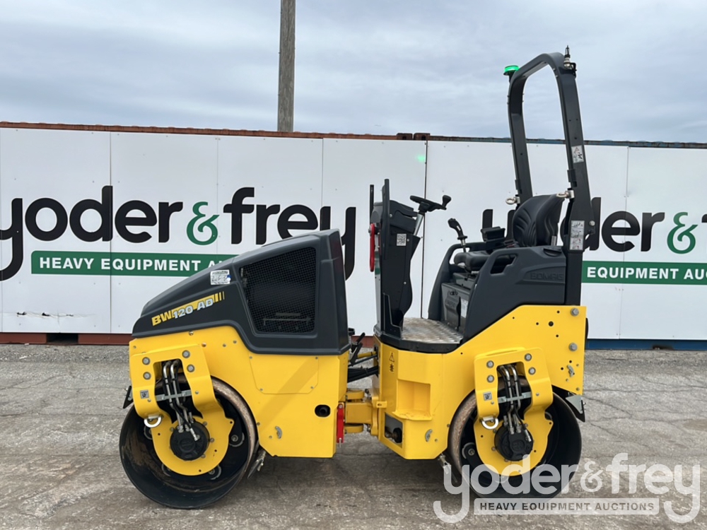 Unused 2023 Bomag BW120 AD-5 Double Drum Vibrating Roller, Roll Bar, 47" Drum (Meter Reading: 3 Hours)