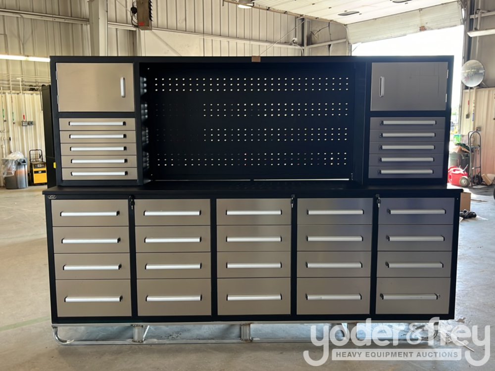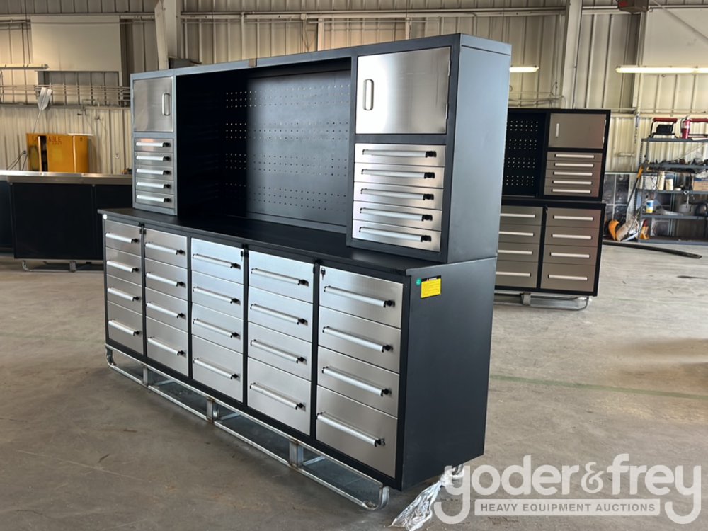 Unused 9' Work Bench c/w 20 Drawers; 10 Drawers, 2 Cabinets on Top Tier - 1******3
