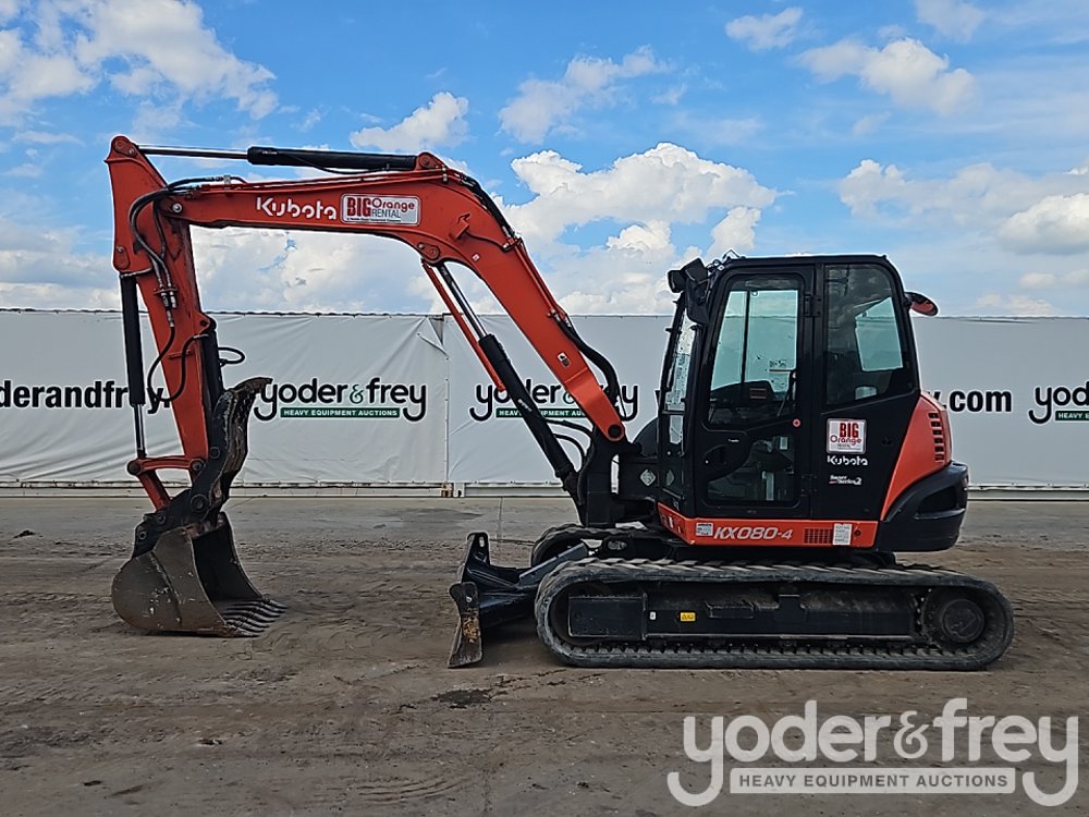 2022 Kubota KX080-4S2 Excavator, A/C, Rubber Tracks, Blade, Swing Boom, Aux Hydraulics, 36" Bucket, Hydraulic Thumb (Meter Reading: 1246 Hours) - K***************8