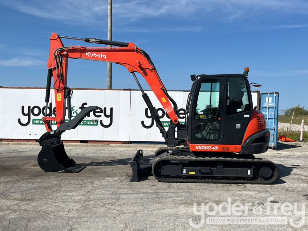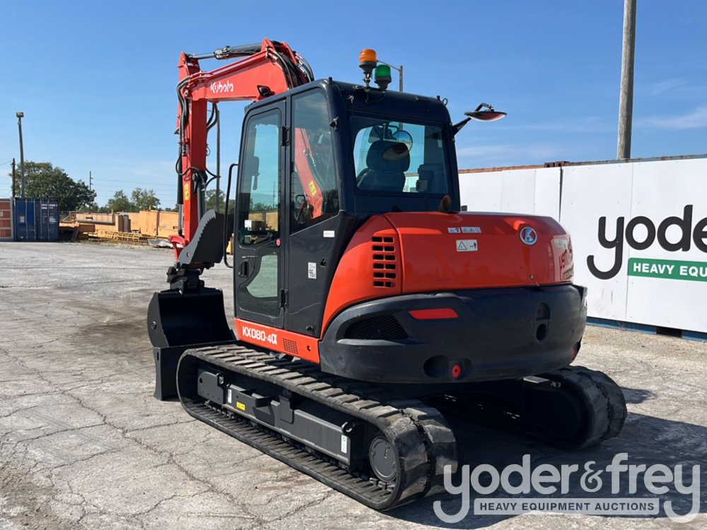 2019 Kubota KX080-4 Excavator, A/C, 18" Rubber Tracks, Blade, Swing Boom, CV, Aux Hydraulics, QC, 36" Bucket, Hydraulic Thumb (Meter Reading: 3807 Hours) - J***************6