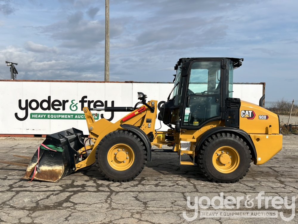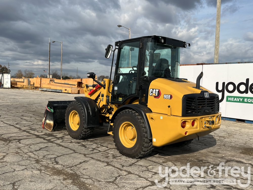 2023 CAT 908 Wheel Loader, Cab, 81" Bucket, Forks, QC, Aux Hydraulics (Meter Reading: 197 Hours) - C***************3