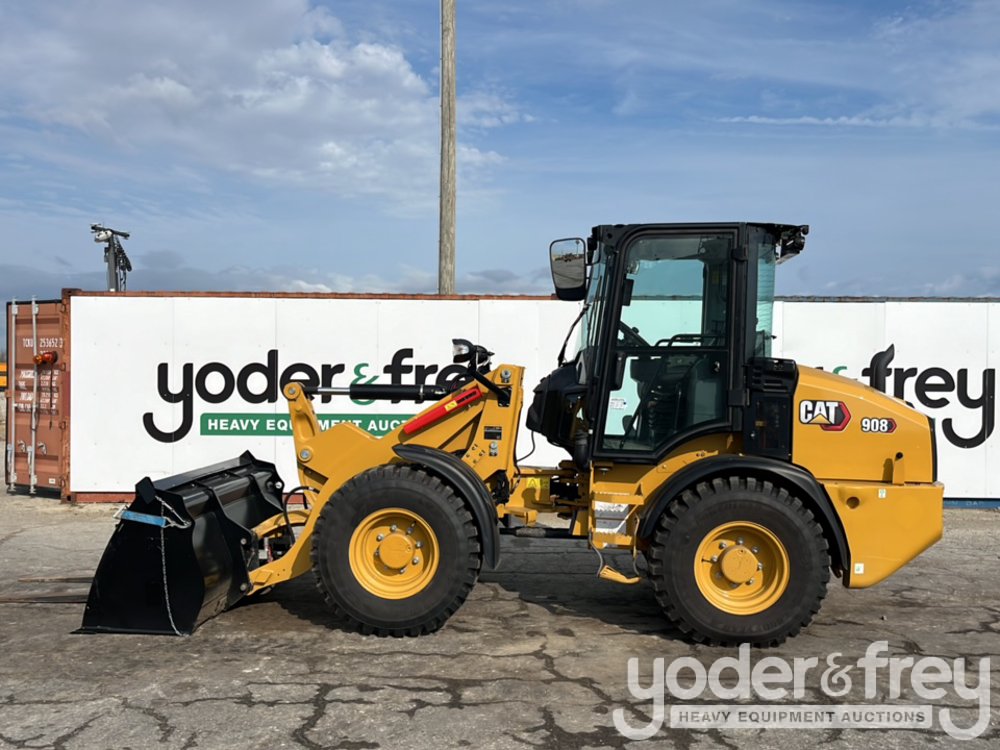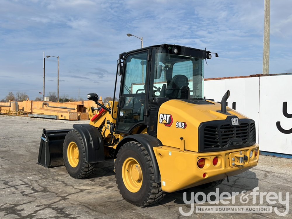 2023 CAT 908 Wheel Loader, Cab, 81" Bucket, Forks, QC, Aux Hydraulics (Meter Reading: 253 Hours) - C***************5