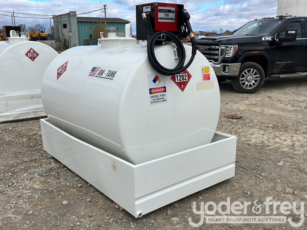 Unused AM-Tank 600 Gal Diesel Fuel Tank c/w Containment Dike, 120V Supply Pump - 8***9