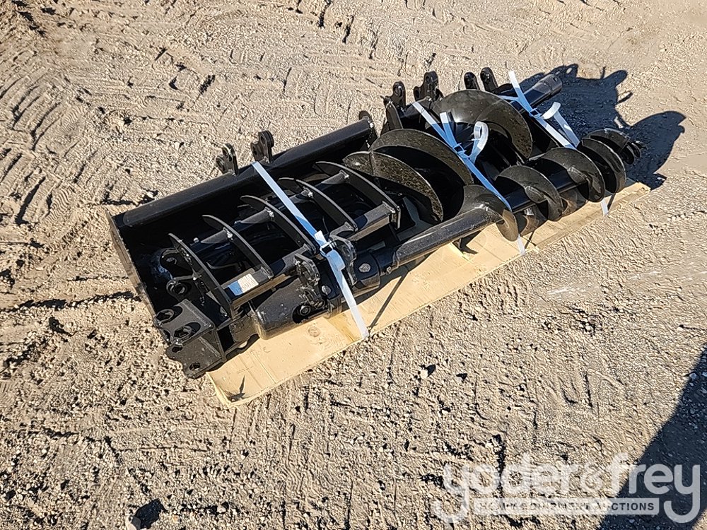 Visec (QTY 8) Quick Hitch, Rake , Ripper, Graber, Auger, 12" Auger Rod, 8" Bucket, 32" Digging Bucket to suit 1-2 Ton Mini Excavator - B****4