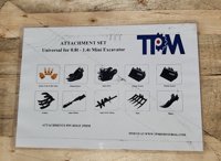 Unused TPM (QTY 10) 5pcs Bucket Teeth w/ Bolts, 8'' Bucket, 24'' Bucket, 32'' Bucket, Ripper, Rake, Quick Hitch, 8'' Auger, 12'' Auger, Grabber, Attatchments to suit 0.8 to 1.4 Ton Mini Excavator, 1'' Pin Hole - 2******3