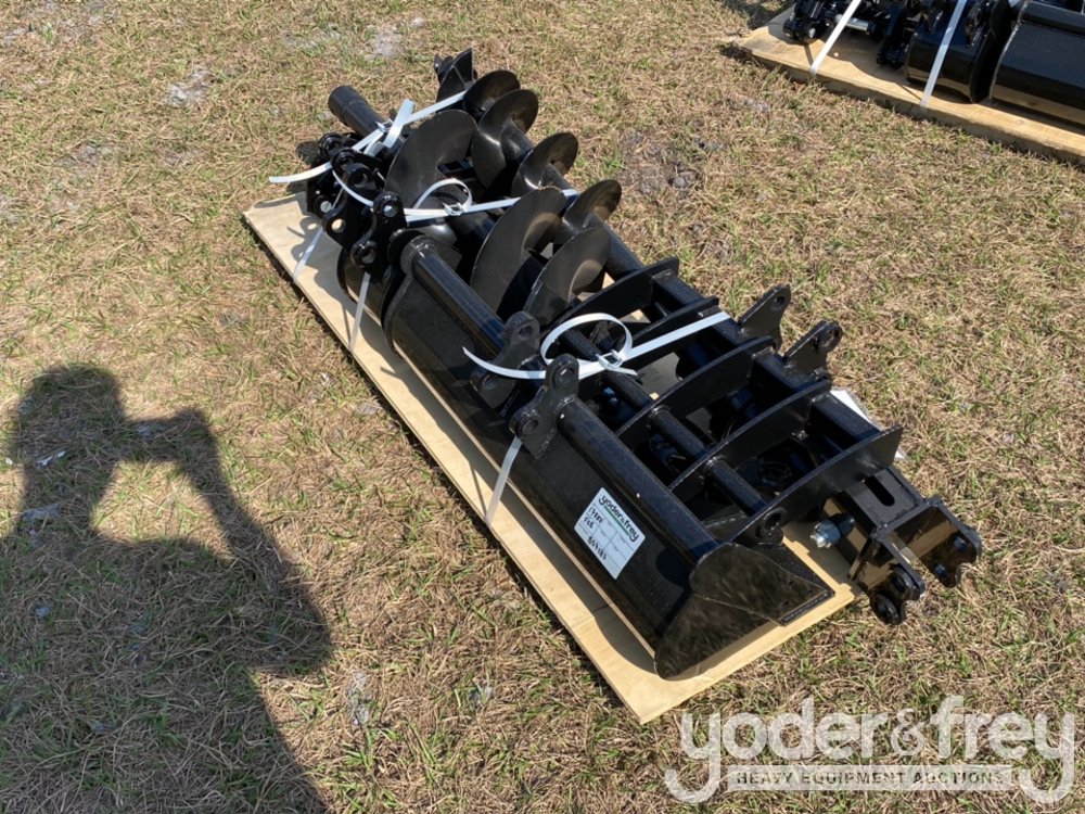 Unused 2025 Miva QTY (8) Quick Hitch, Rake, Ripper, Auger,12” Auger Rod, 8” Bucket, Grabber, 32” Bucket - B****3