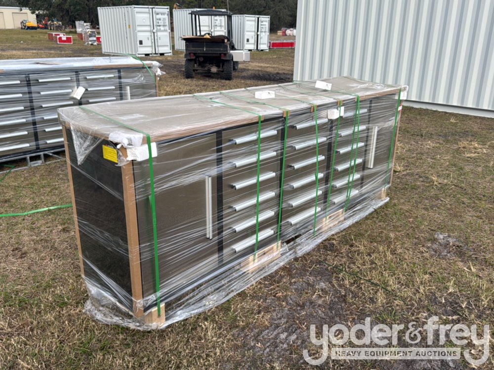 Unused Steelman 10' Bench c/w 18 Drawers, 2 Cabinets, Lock, Anti-Slip Inners, 3 Rail Stainless Steel - 1*******3