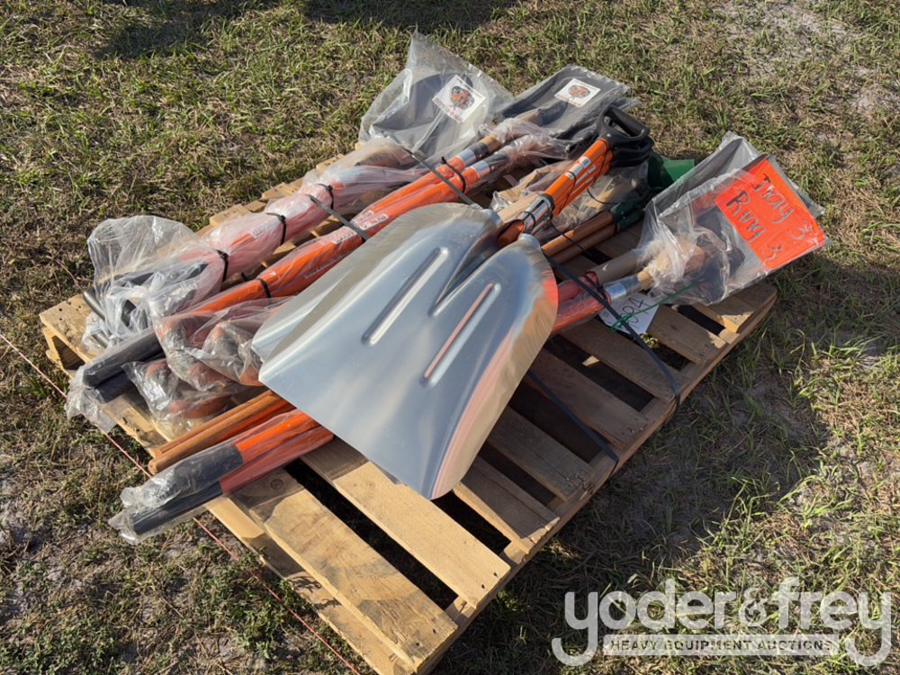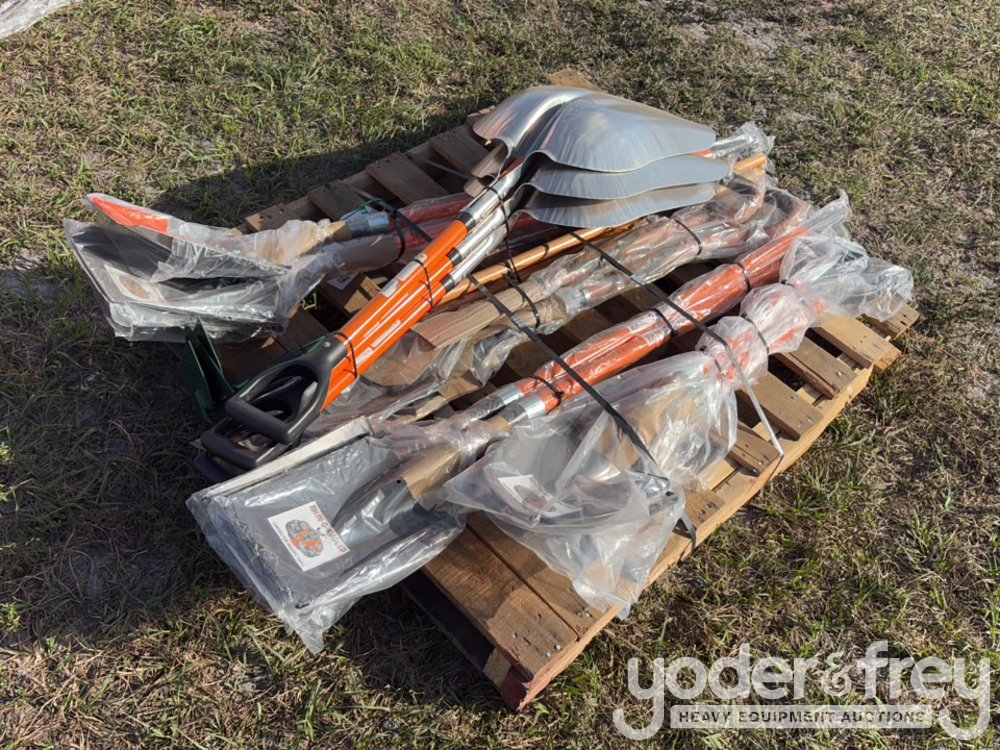 Rhino Rugged Landscaping Tools W/ Fiberglass Handle ( Sell As One Lot ) (3) Each # 12 Aluminum Scoop, (3) Forged Spading Fork, (3) 5 Tine Manure Fork, (3) Roofer Spade, (3)10" Hoe, (3)Sq Pt Shovel - 1 Lot = 18 Pieces - 5************0