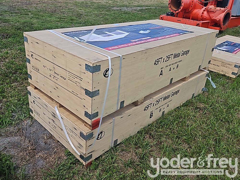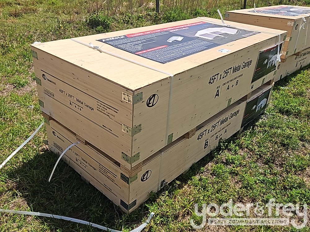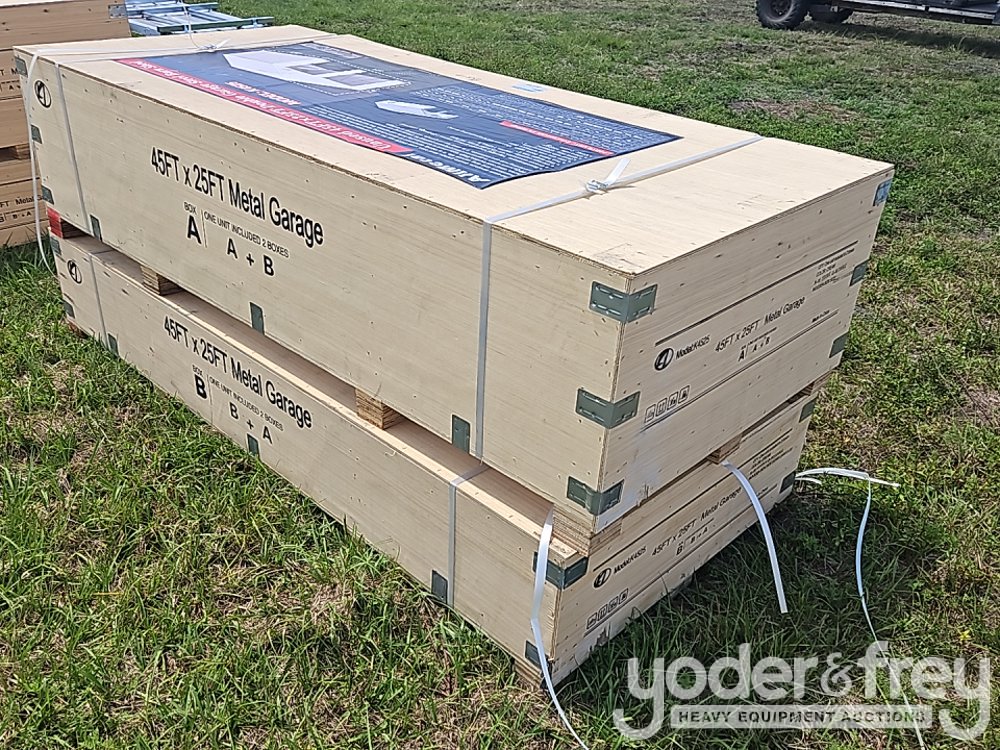 Unused 2024 Allmetal K4525 Double Garage Steel Barn Shed, 45' x 25', 14 Gauge/16-Gauge Primary Frames / 29-Gauge Metal Roof, Overall Dimension:45' x 25' x 14', Storage Capacity: Approx.1125', Wall Height:105.5", Two Frame Doors Open:102"Wx102"H, With One Side Entrance Door - A*******9