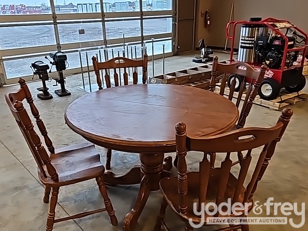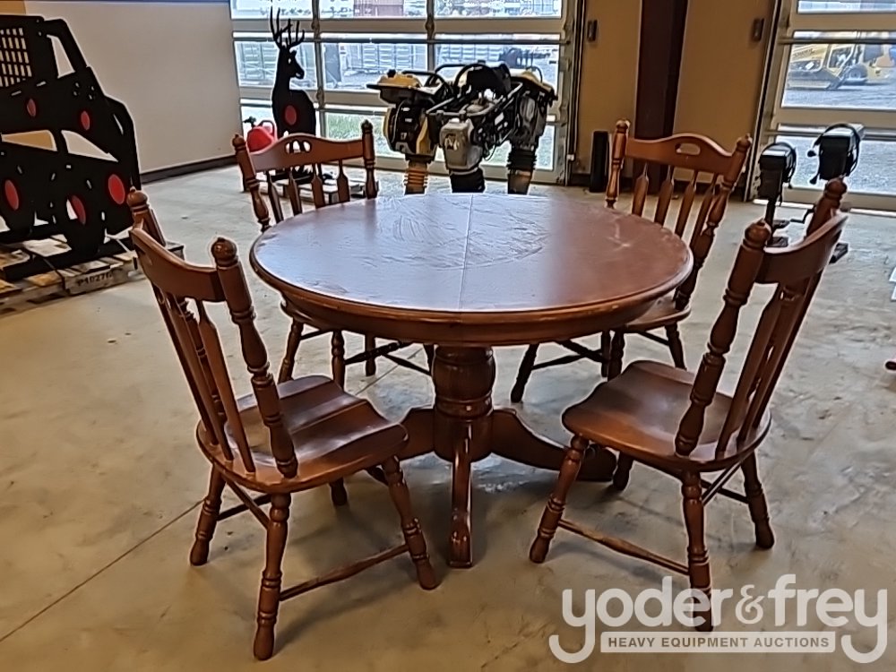 LOT # 0111 -- Round Wooden Table c/w 4 Chairs