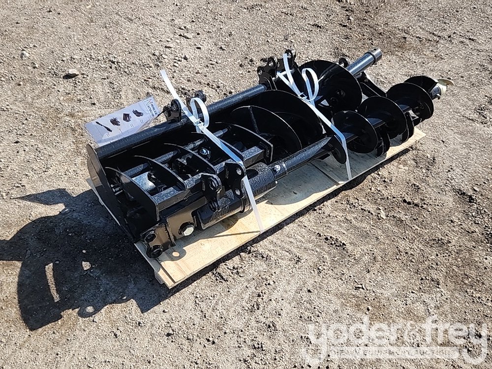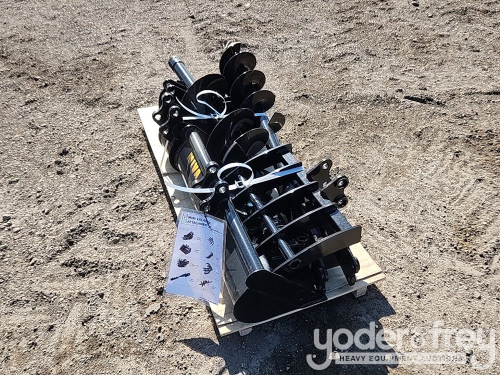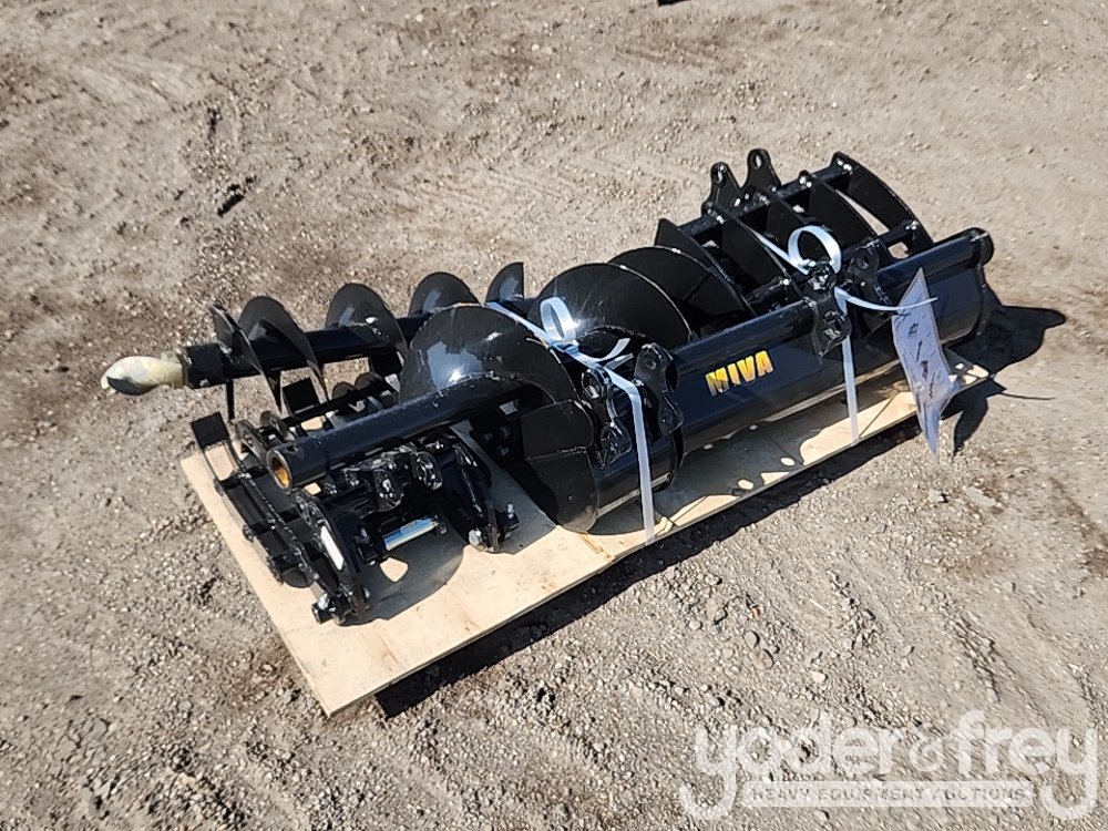 LOT # 0764 -- Unused Miva Quick Hitch, Rake , Ripper, Graber, Auger, 12" Auger Rod, 8" Bucket, 32" Digging Bucket to suit 1-2 Ton Excavator (8 of)