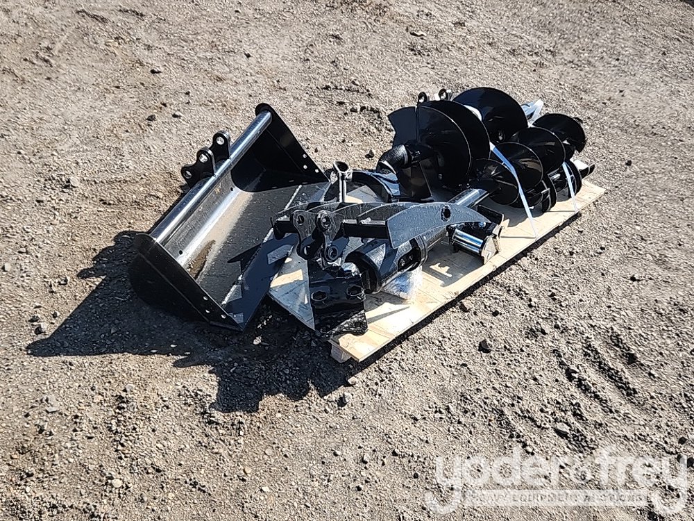 Unused Quick Hitch, Rake , Ripper, Graber, Auger, 12" Auger Rod, 8" Bucket, 32" Digging Bucket to suit 1-2 Ton Excavator (8 of) - B****5
