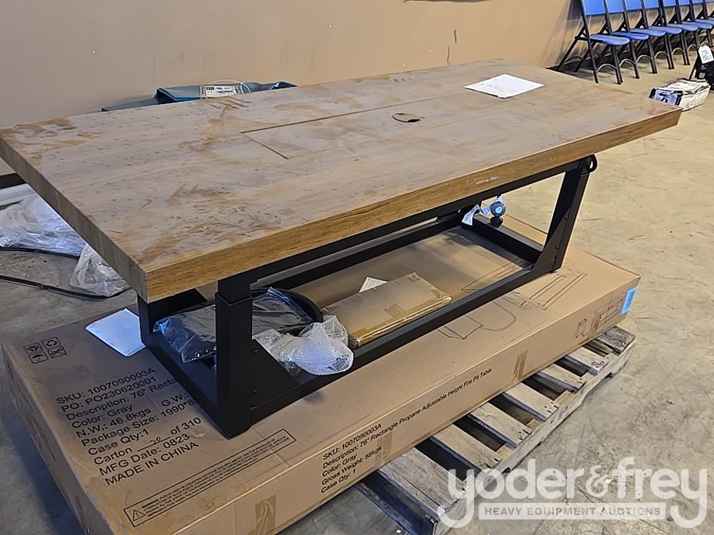 Unused Fire Pit, 55" Adjustable Height Propane Fire Pit Table w/ Table Top Lid - Brown (Missing Propane Mount) - 340011070