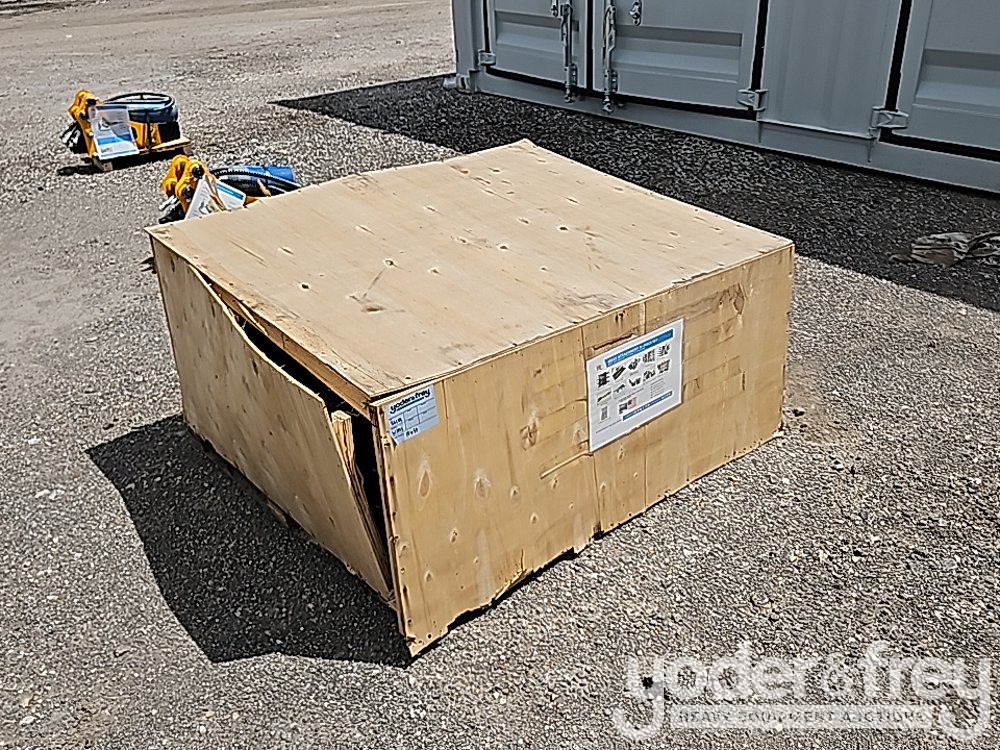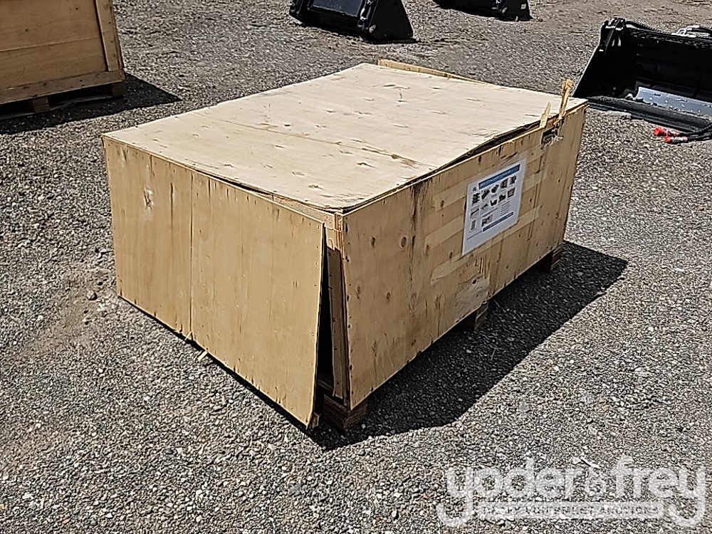 LOT # 0401 -- Unused 2025 IR Pallet of Misc Mini Excavator Attachments, Toothed Bucket, Hyd Tilting Bucket, Simi-Automatic Quick Changer, Wood Grab, Rake, Auger, Spiral Drill Rod,Rippper, Hyd Thumb Clamp, Grid-Shaped Bucket