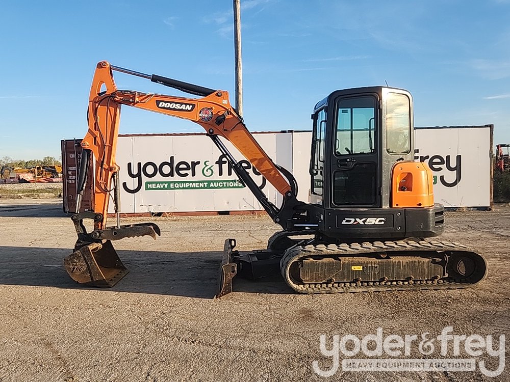 2019 Doosan DX50 Excavator, Cab, A/C, Rubber Tracks, Blade, Swing Boom, Aux Hydraulics, Bucket, Hydraulic Thumb - D***************5