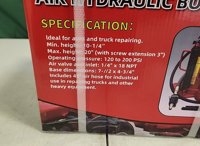 Unused 20 Ton Air Hydraulic Bottle Jack - 340013652