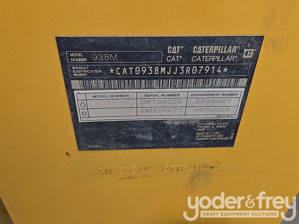 2019 CAT 938M Wheeled Loader, Cab, A/C, Bucket, QC (Meter Reading: 3396 Hours) - J3R07914