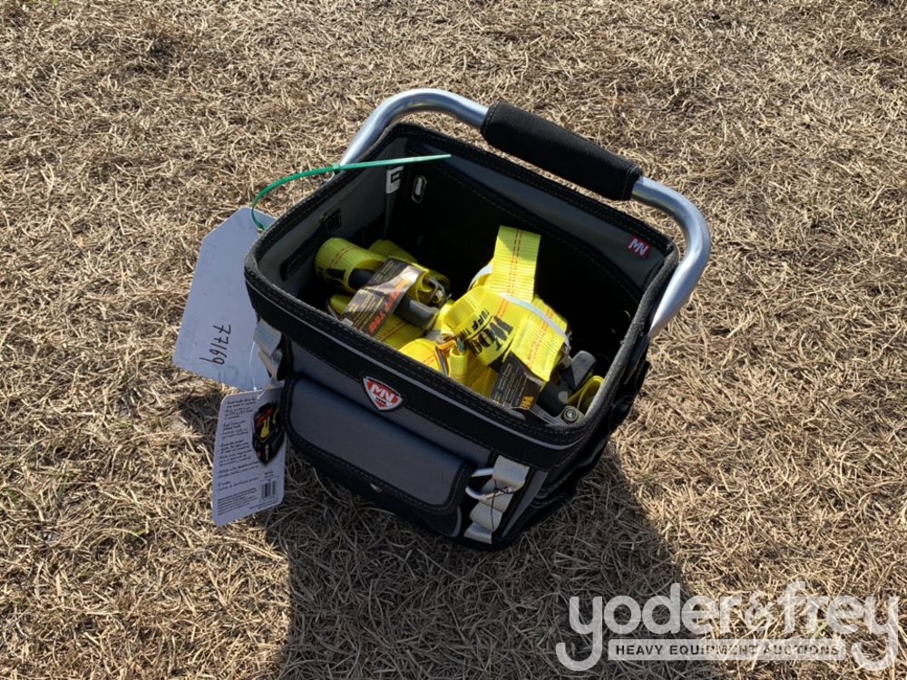 1 1/2" x 15' Tuff Tow Ratchet Straps (8pcs) c/w 12" Professional Tool Bag - 600077169