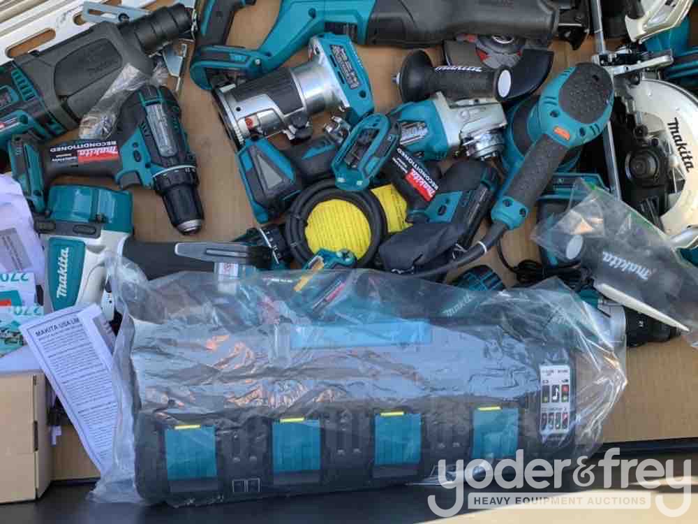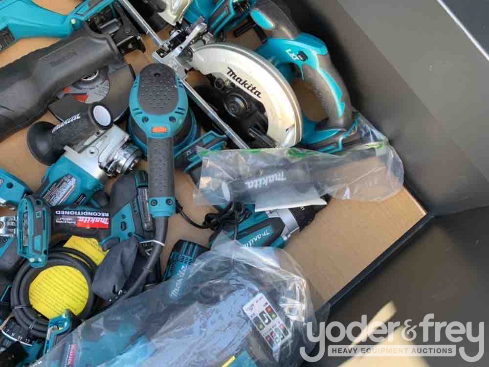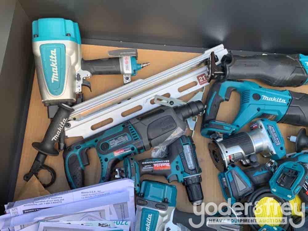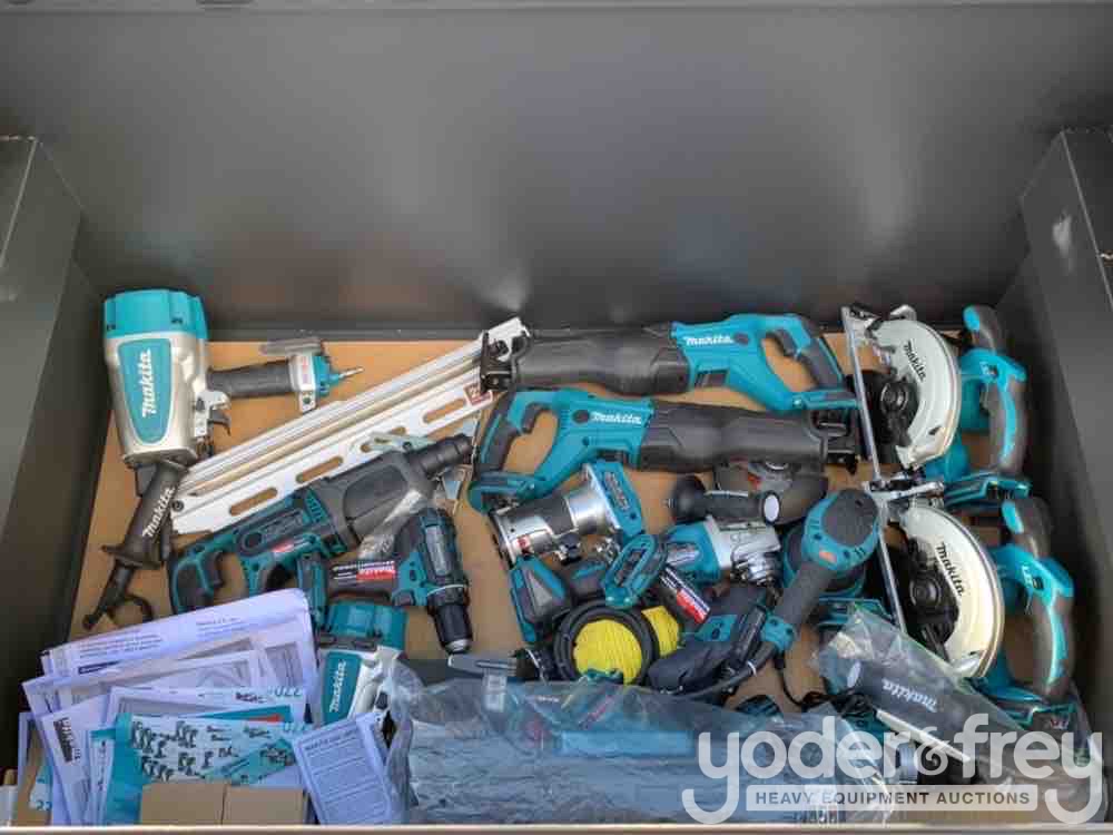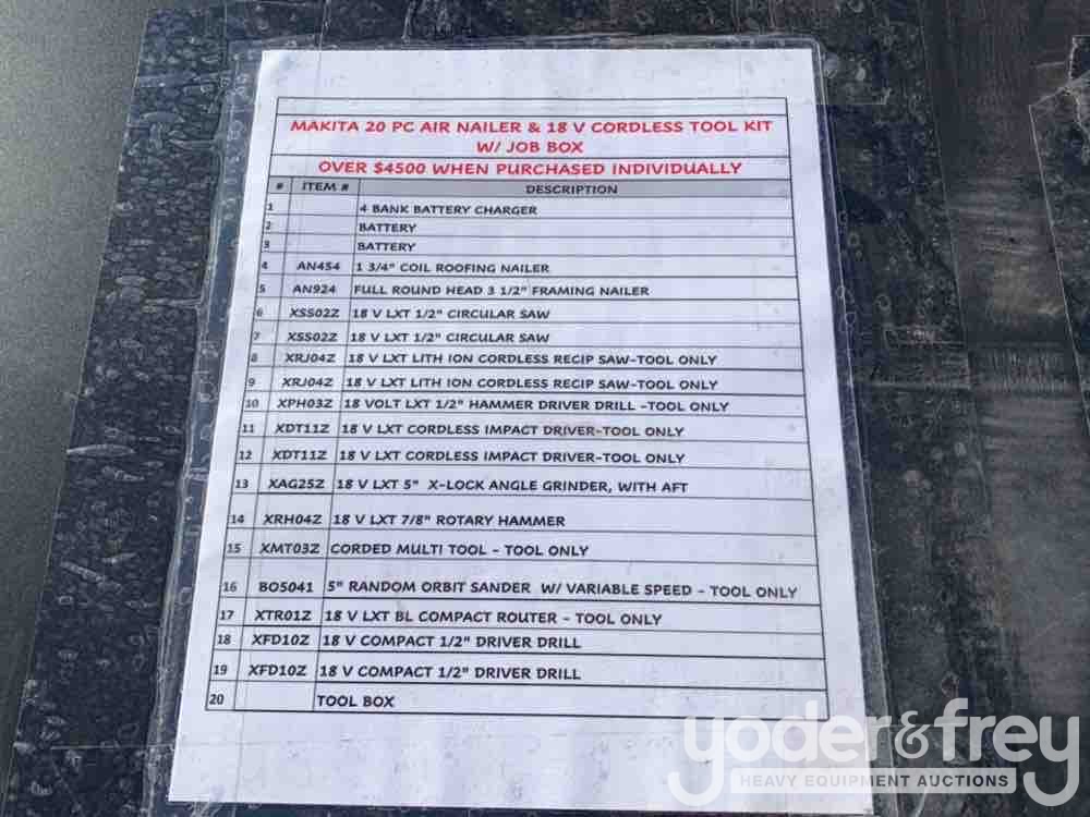 LOT # 0469 -- 20pcs Makita Air Nail Gun, 18V Cordless Tool Set c/w Job Site Tool Box