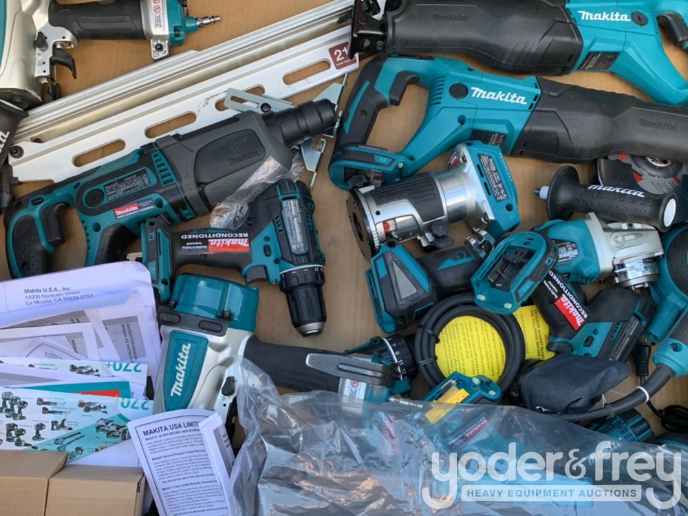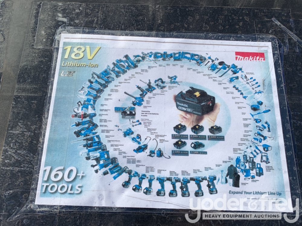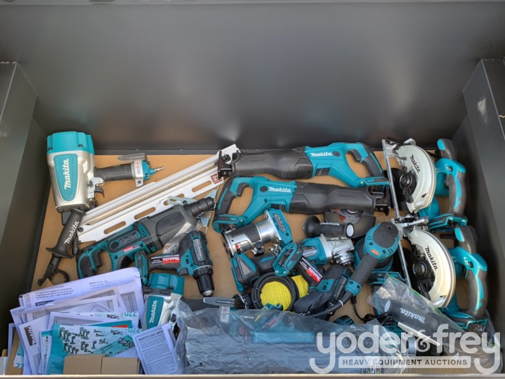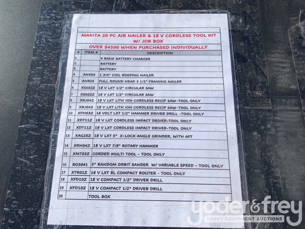 LOT # 0470 -- 20pcs Makita Air Nail Gun, 18V Cordless Tool Set c/w Job Site Tool Box