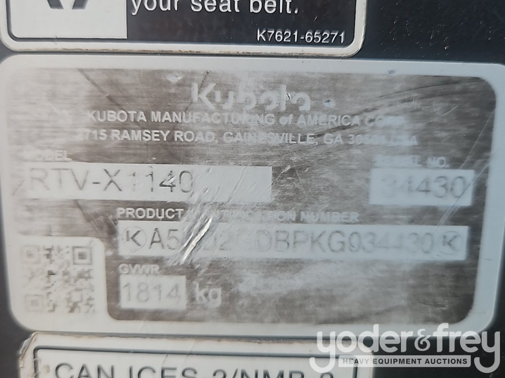 2019 Kubota RTVX1140 4x4 4 Seater Utility Vehicle, OROPS, Diesel, Hydraulic Dump Bed (Meter Reading: 1319 Hours) - DBPKG034430