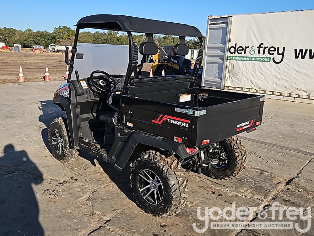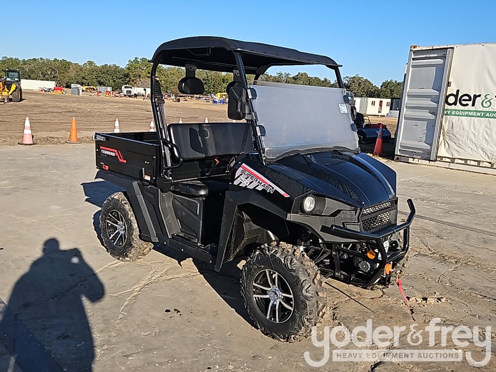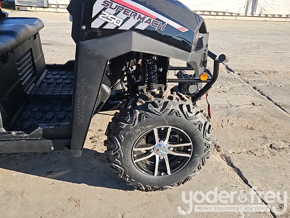LOT # 1496 -- Super Mach UTV Side by Side, c/w All Terrain Tires, Aluminum Wheels, Winch, 37MPH, Max Speed, Dump Bed