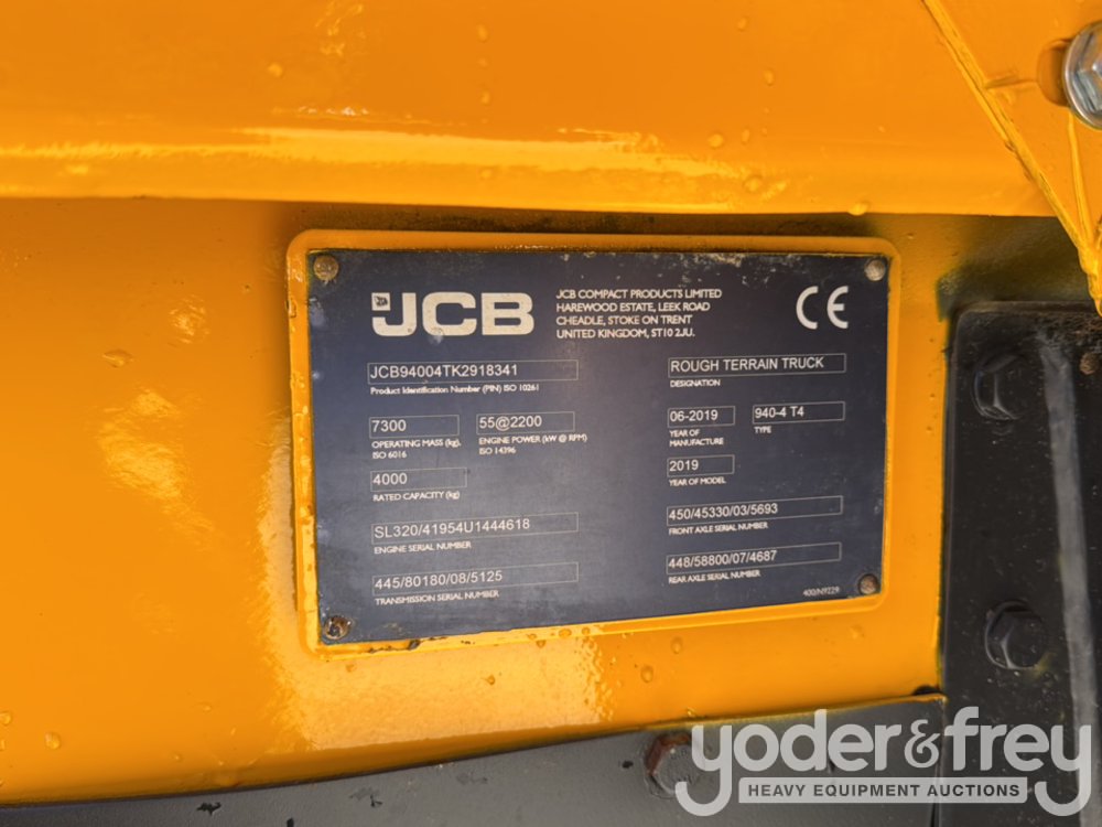 2019 JCB 940 4WD Rough Terrain Forklift, 2 Stage Mast, Forks (Meter Reading: 3027 Hours) - JCB94004TK2918341