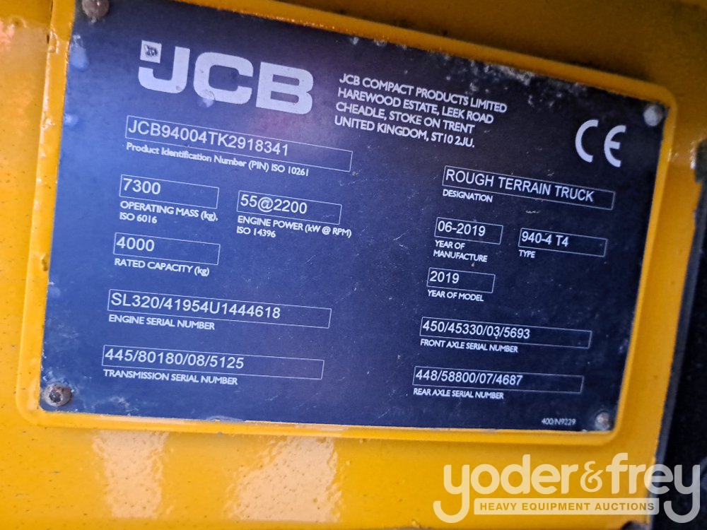 2019 JCB 940 4WD Rough Terrain Forklift, 2 Stage Mast, Forks (Meter Reading: 3027 Hours) - JCB94004TK2918341
