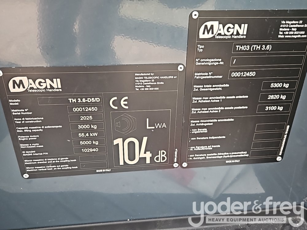 Unused 2025 Magni TH3.6 Telehandler, 6,600lb Max Lift Capacity, 19' Max Lift Height, Joystick Controls, Forks, WLI - 00012450