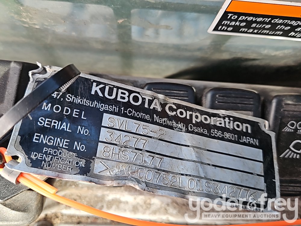 2018 Kubota SVL75-2HFWC Tracked Skidsteer Loader, Cab, A/C, Joystick Controls, High Flow, Aux Hydraulics, 74" Bucket, Rear View Camera (Meter Reading: 2674 Hours) - JKUC0752L01S34277