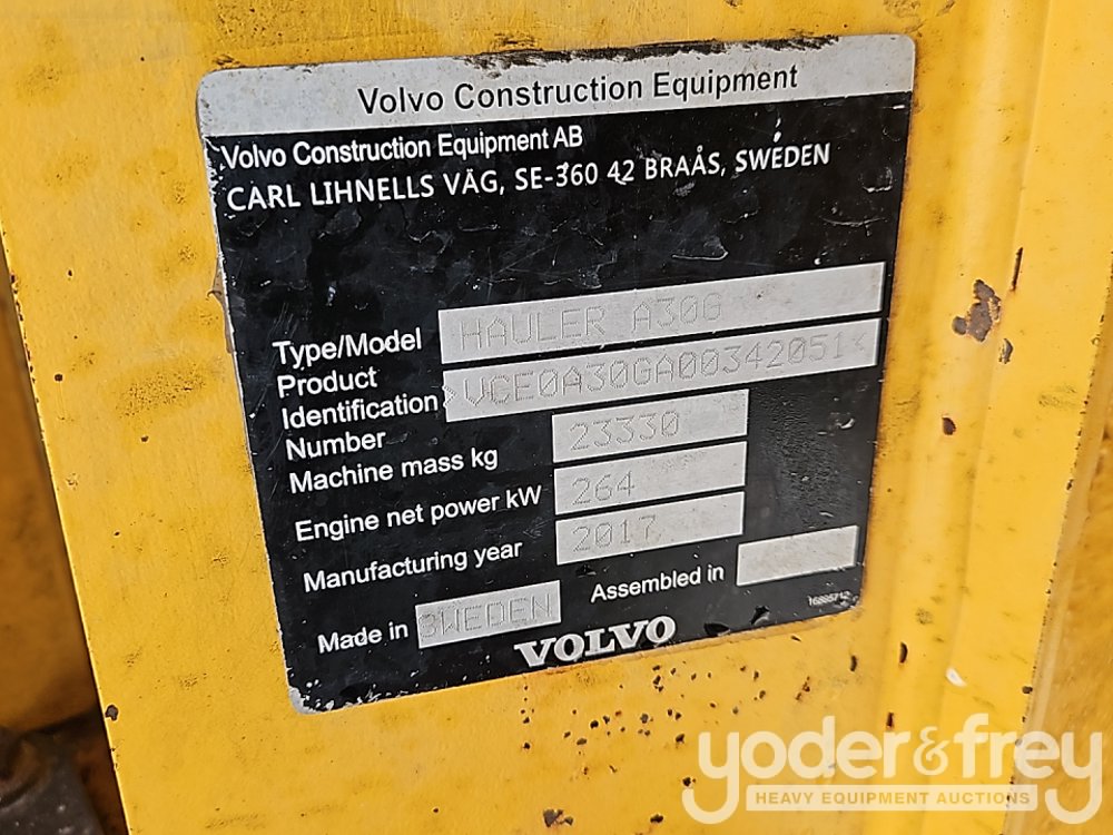 2017 Volvo A30G 6x6 Articulated Dumptruck, Cab, A/C 750,65R x 25 tires, Rear View Camera (Meter Reading: 7275 Hours) - VCE0A30GA00342051