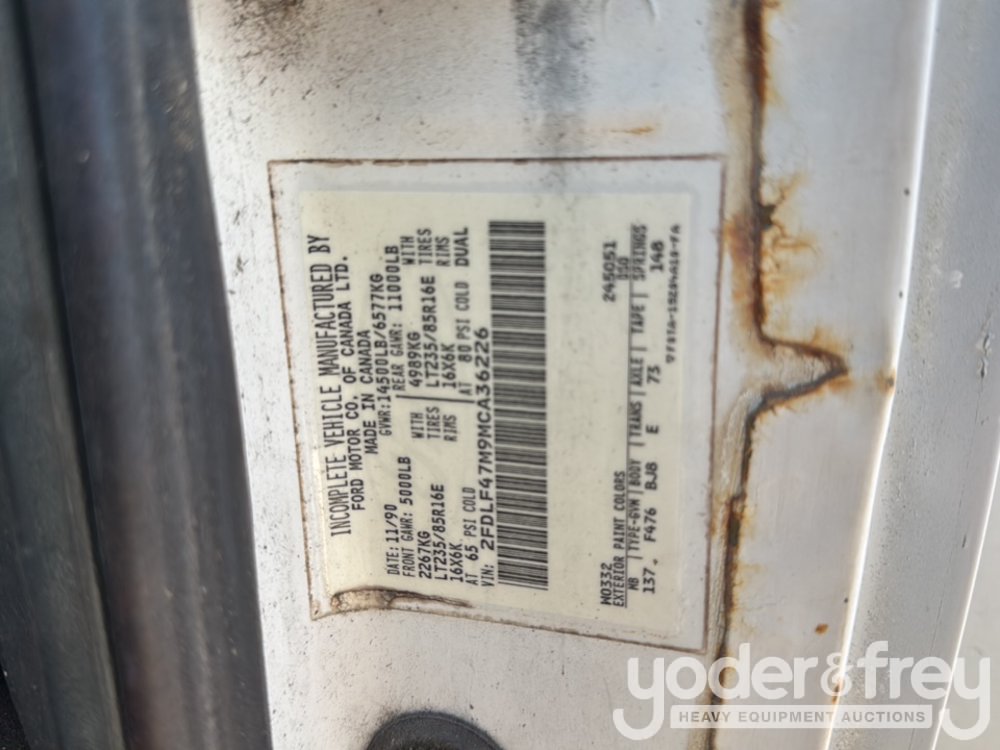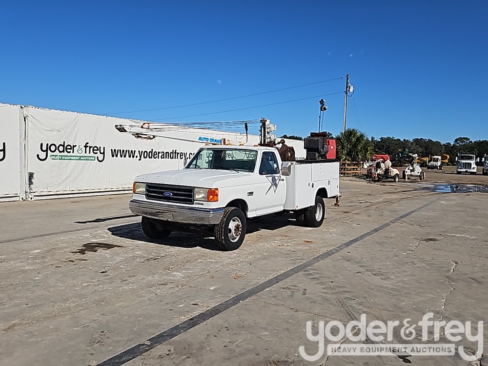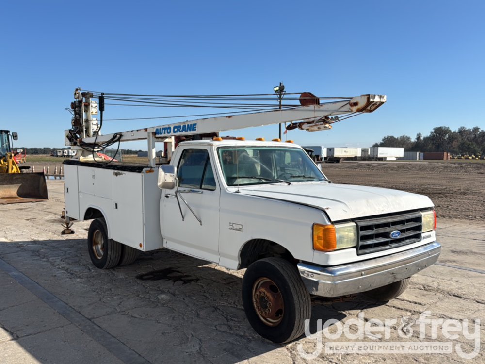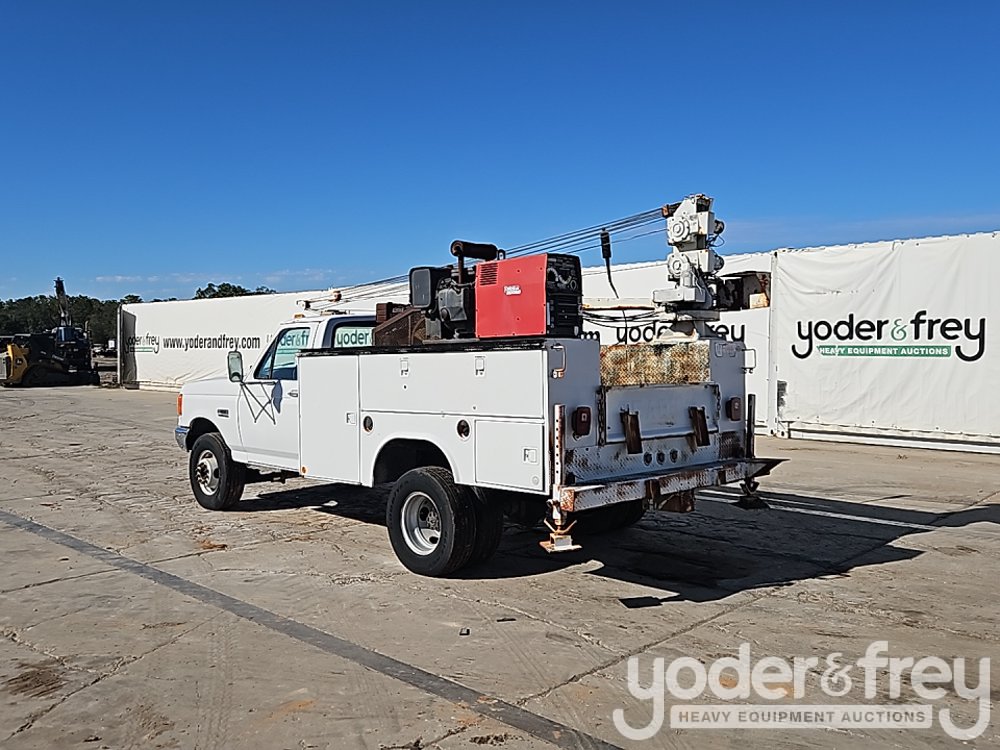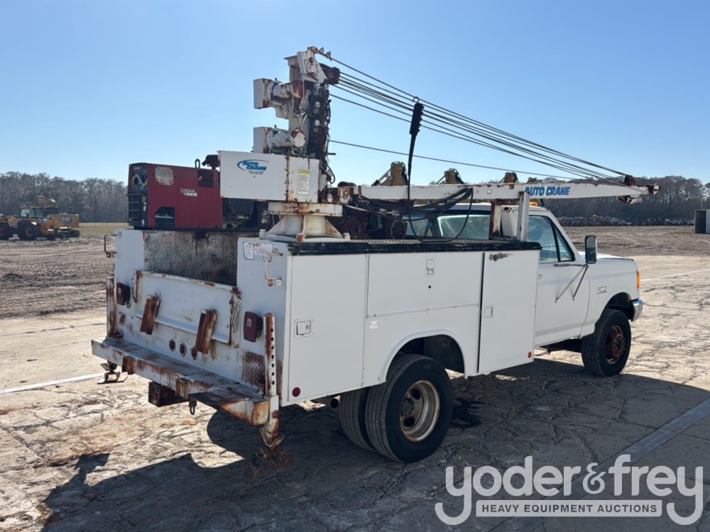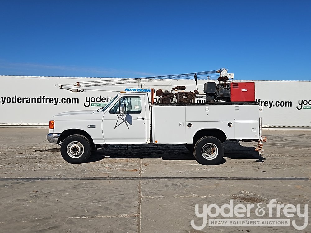 1991 Ford F450 4x2 Service Truck, 7.3L V8 Diesel Engine, Automatic Transmission, Auto Crane, Compressor, Lincoln Electric Welder, Spare Tires (Meter Reading: 14693 Miles) - 2FDLF47M9MCA36226