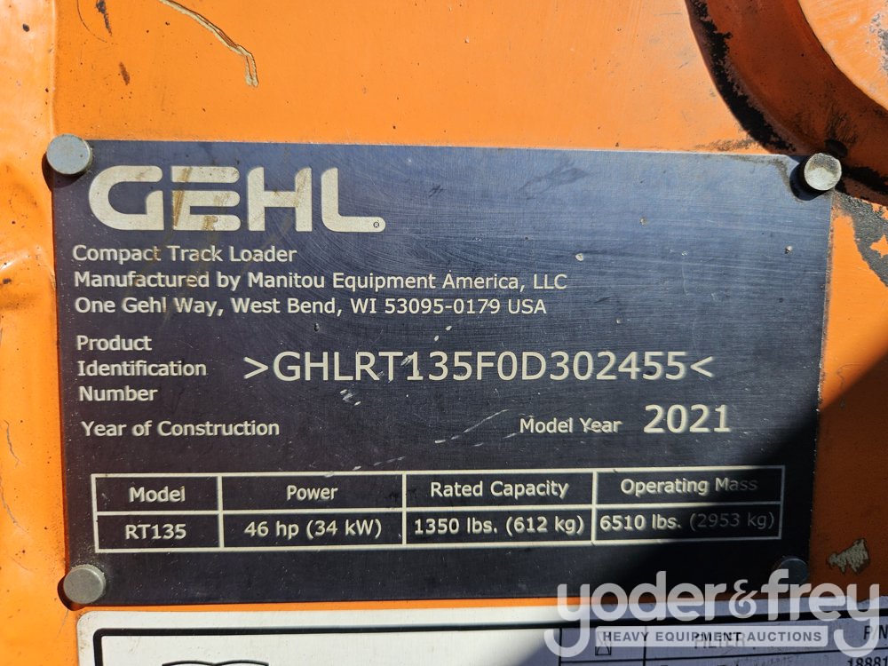 2021 Gehl RT135 Tracked Skidsteer Loader, Aux Hydraulics, Bucket, (Meter Reading: 1478 Hours) - GHLRT135F0D302455