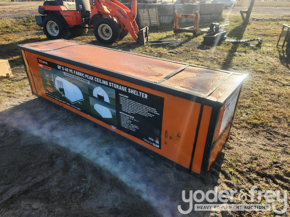 Unused Tmg Industrial ST3040E 30' x 40' Peak Ceiling Storage Shelter w/ Heavy Duty 11 oz PE Cover & Drive Through Doors - 7014-15