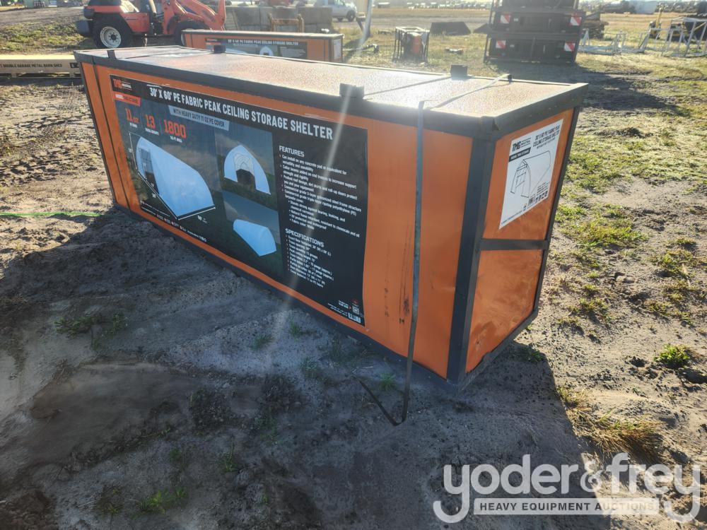 Unused Tmg Industrial ST3060E 30' x 60' Peak Ceiling Storage Shelter w/ Heavy Duty 11 oz PE Cover & Drive Through Doors - 7014-14