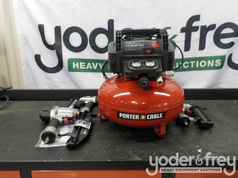 Lot # 0449   Unused 1.5 Hp 6 Gal. Air Compressor c/w 3 Nailers